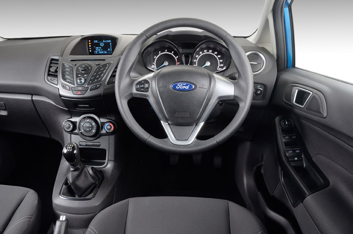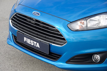 The new Fiesta face is dominated by a large trapezoidal front grille bracketed by laser-cut headlamps with daytime running lamps featuring LEDs on some models and a power-dome bonnet design. A high-gloss finish for the upper instrument panel that flows to the lower centre console, is replicated in the door panels. Twelve vibrant and dynamic colours, including Copper Pulse, Hot Magenta and Candy Blue add further appeal.