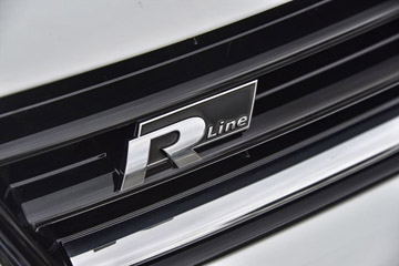 Then, just because it’s one of a kind, VW threw in an R-Line package absolutely free. That’s an R-Line logo on the radiator grille, special front and rear bumpers, sill extensions, a sporty rear diffuser with integrated chrome tailpipe, a rear spoiler in body colour and 17-inch Serron alloy wheels with 215/40 Bridgestone Potenzas. Don’t panic; the spare is an equivalently sized 185/60 R15 steel unit.